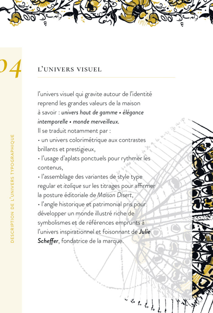 Extraits de la charte graphique de l’identité visuelle de © Maison Disert