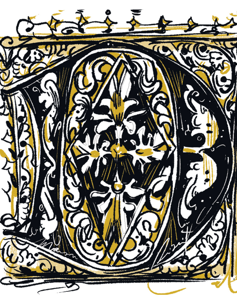 Un goût de littéraire, d’enluminures, d’un temps Ancien, d’un monde antique, d’ornements, de motifs végétaux pour venir authentifier chaque catégorie de son illustré site. Authentique on essaye de l’être. Des mots j’en dis aussi pêle-mêle, des images, en voilà. L’image d’une plume à esquisser, je la dessine avec la mienne : mon stylet numérique depuis ma Wacom, ma vieille tablette numérique, qui me sert de pupitre ou d’écritoire qui dans un temps parallèle aurait été qui sait convoité des moines copistes. Relier l’ensemble pour rassembler, je crois qu’ici c’est ce qui fait le détail illustré voire mon détail affirmé.